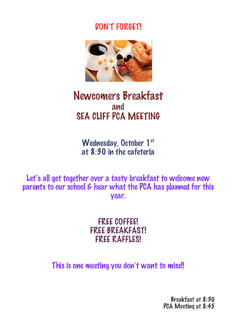 Newcomers Breakfast & Sea Cliff PCA Meeting!